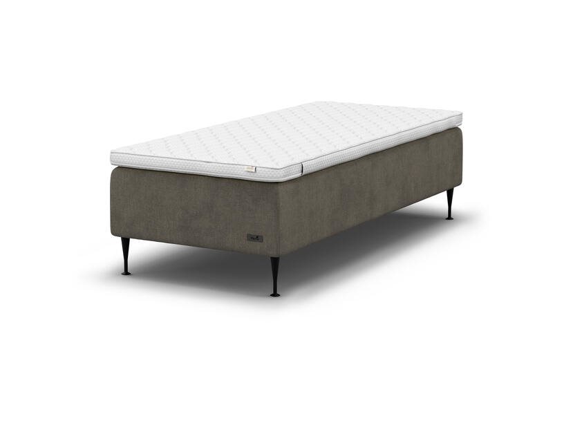 Ramsängens stoppning av polyeter stabiliserar fjädrarna och skapar ett kontrollerat grundlager. Ramen är tillverkad av gran och furu med en höjd på cirka 12 cm, vilket ger en robust bas för hela konstruktionen. Elegans kan kombineras med valfri bäddmadrass för att justera komfortnivån ytterligare.
