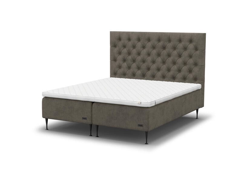 Ramsängens stoppning av polyeter stabiliserar fjädrarna och skapar ett kontrollerat grundlager. Ramen är tillverkad av gran och furu med en höjd på cirka 12 cm, vilket ger en robust bas för hela konstruktionen. Elegans kan kombineras med valfri bäddmadrass för att justera komfortnivån ytterligare.